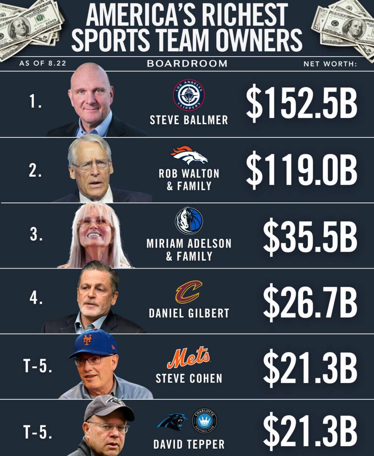 2014年,鲍尔默花费20亿美元收购了快船队,并且又花费20亿美元建造了快船的新球馆,而在今年最新的财富榜单中,鲍尔默的身家高达1525亿美元,排在北美职业体育联盟所有球队老板的第一名。
